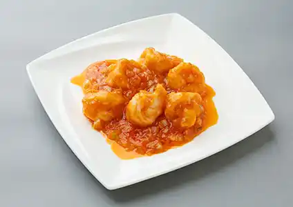 プリプリの海老にコクのある甘辛ソースが良く絡んだ自慢の一品。