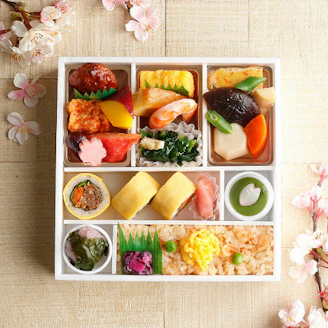 春ならではの桜海老御飯や、人参きんぴら煮・牛香味焼などにわさびマヨネーズがアクセントのオリジナル太巻、じっくりと漬け込んだ鰈西京焼、出汁が優しい味わいの小松菜煮浸し、丁寧に焚き上げた〈なだ万〉自慢の煮物など。甘味の桜餅まで入った豪華なお弁当です。