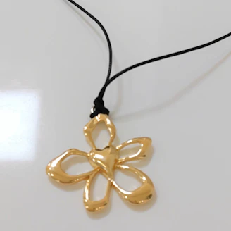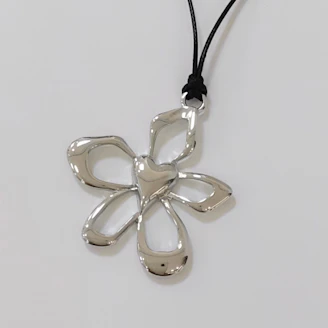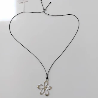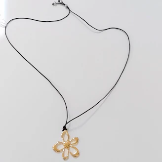 革ひも風フラワーハートネックレス