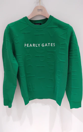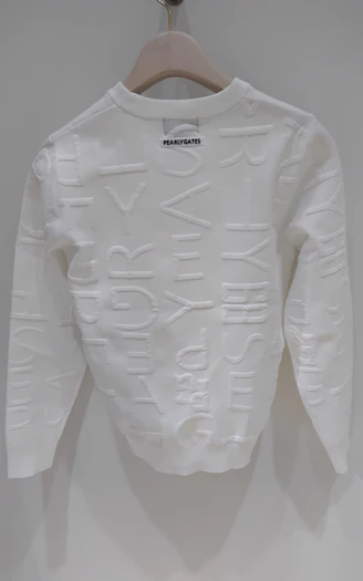 レイアウトに変化をつけたジャガードロゴをバランスよく配置した、パーリーゲイツらしい遊び心のあるデザインです。