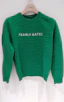異なる編地を組み合わせて風の抜けや、伸縮性にも考慮したジャガードロゴ総柄14Gクルーネックニットプルオーバー。