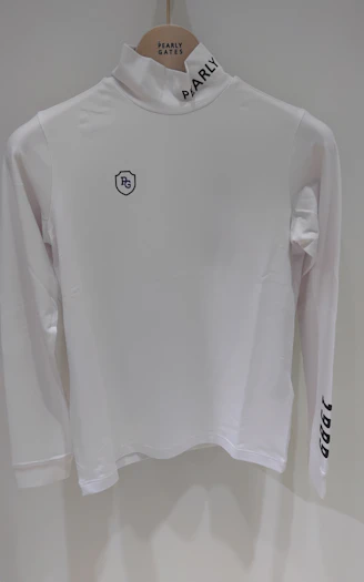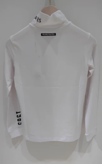 随所に入れたロゴでスポーツテイストを表現した、綿ベア天竺長袖ハイネックカットソー。