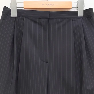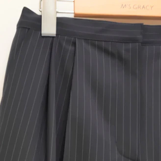 ストレッチの効いたピンストライプの柄のパンツは、爽やかな印象でさらりとした素材感となっており、これからの季節に活躍して頂けます。