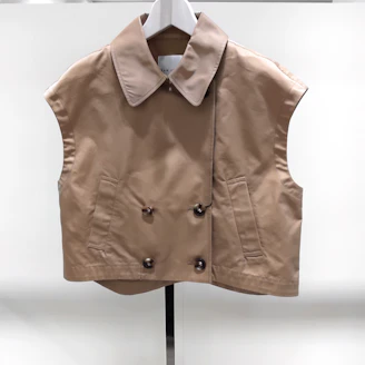 程よいハリ感と微光沢のシャンブレー生地がポイントのスリーブレストレンチジャケット