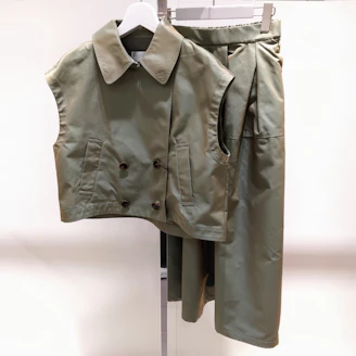 同素材のタックスカートとのセットアップの着こなしもおすすめです😊