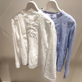 花柄刺繍を施した綿100%コットンレース生地が女性らしくカジュアルな印象のブラウス