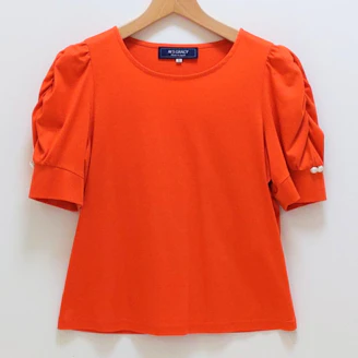 袖口にパールモチーフがポイントとなったカットソーは、綿素材で肌触りが良くこれからの季節に活躍して頂け、シンプルなデザインで着回し力抜群なアイテムです。
