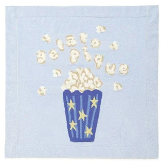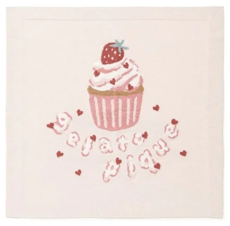 明るくHAPPYなカラーリングにカップケーキやポップコーンのモチーフをデザインしたブランケット。