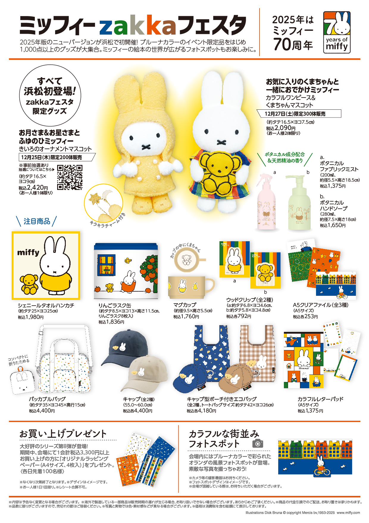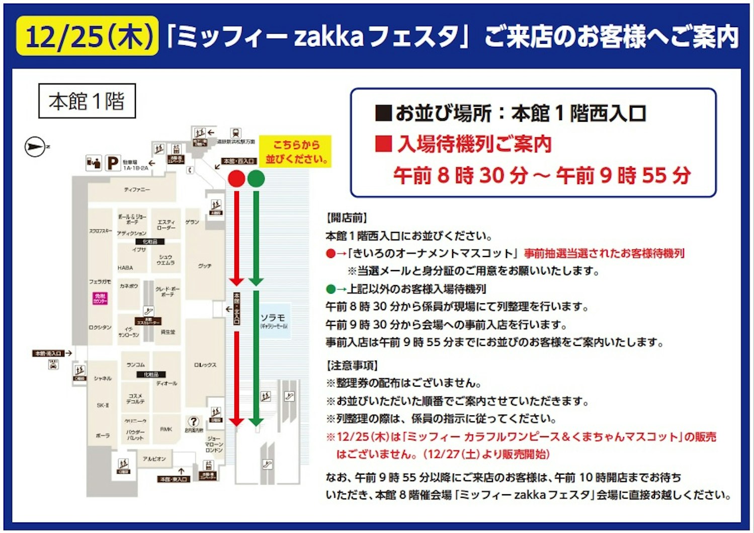 ・ご当選の場合、12月25日(木)10:00~12:00に本館8階催会場「ミッフィーzakkaフェスタ」までお越しいただき、商品のお受け取りをお願いいたします。