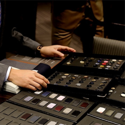 す。また、選んだ生地に最適な釦・裏地を選択します。