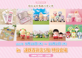 アニメ作品やクリエーターなど、たくさんのむにゅぐるみがお出迎え!