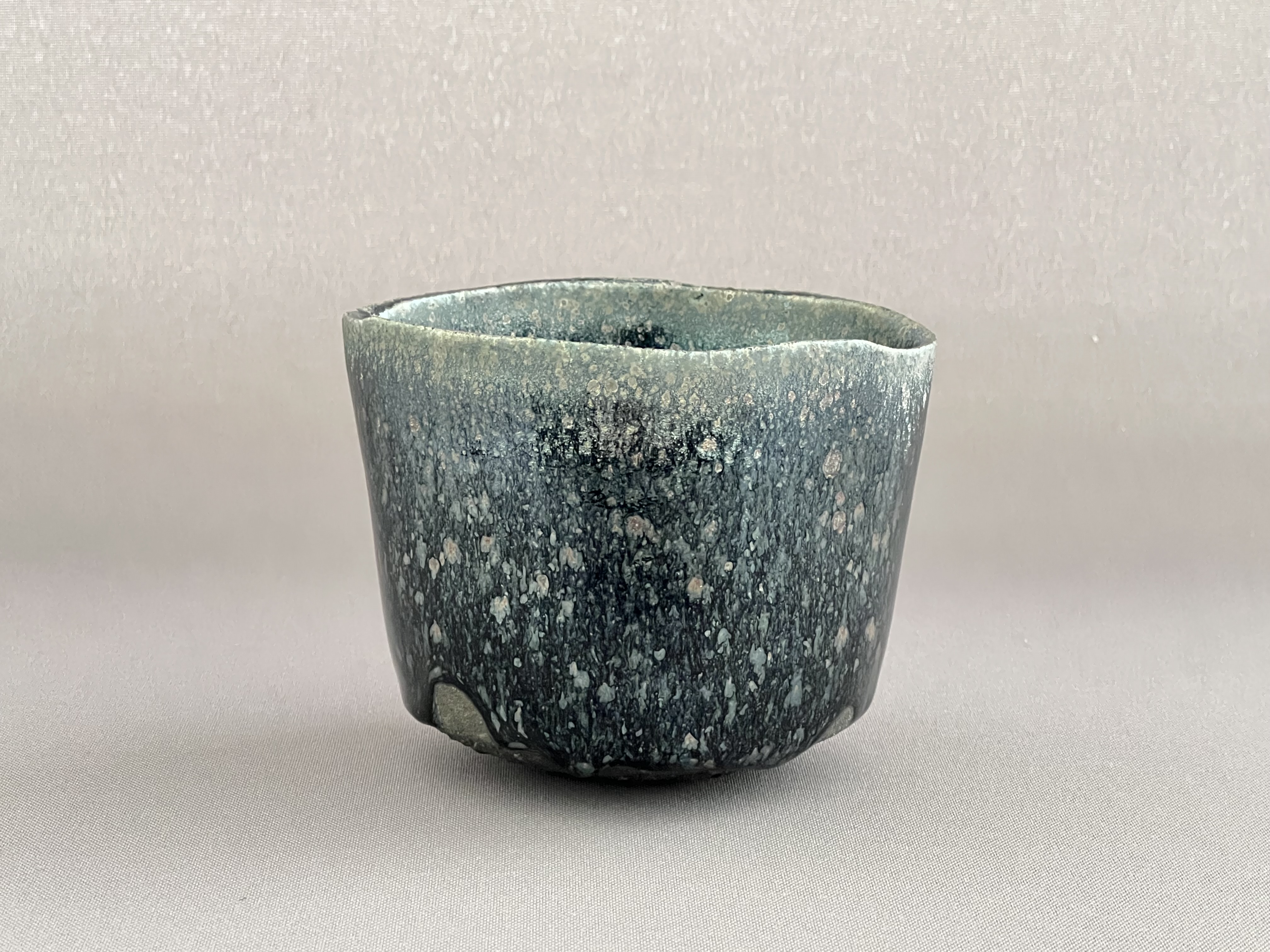 薬の表面に不規則に散在する銀色の斑紋とその周囲にあらわれる虹色の光彩が特徴です。古(いにしえ)の茶人たちの間では「器の中に宇宙