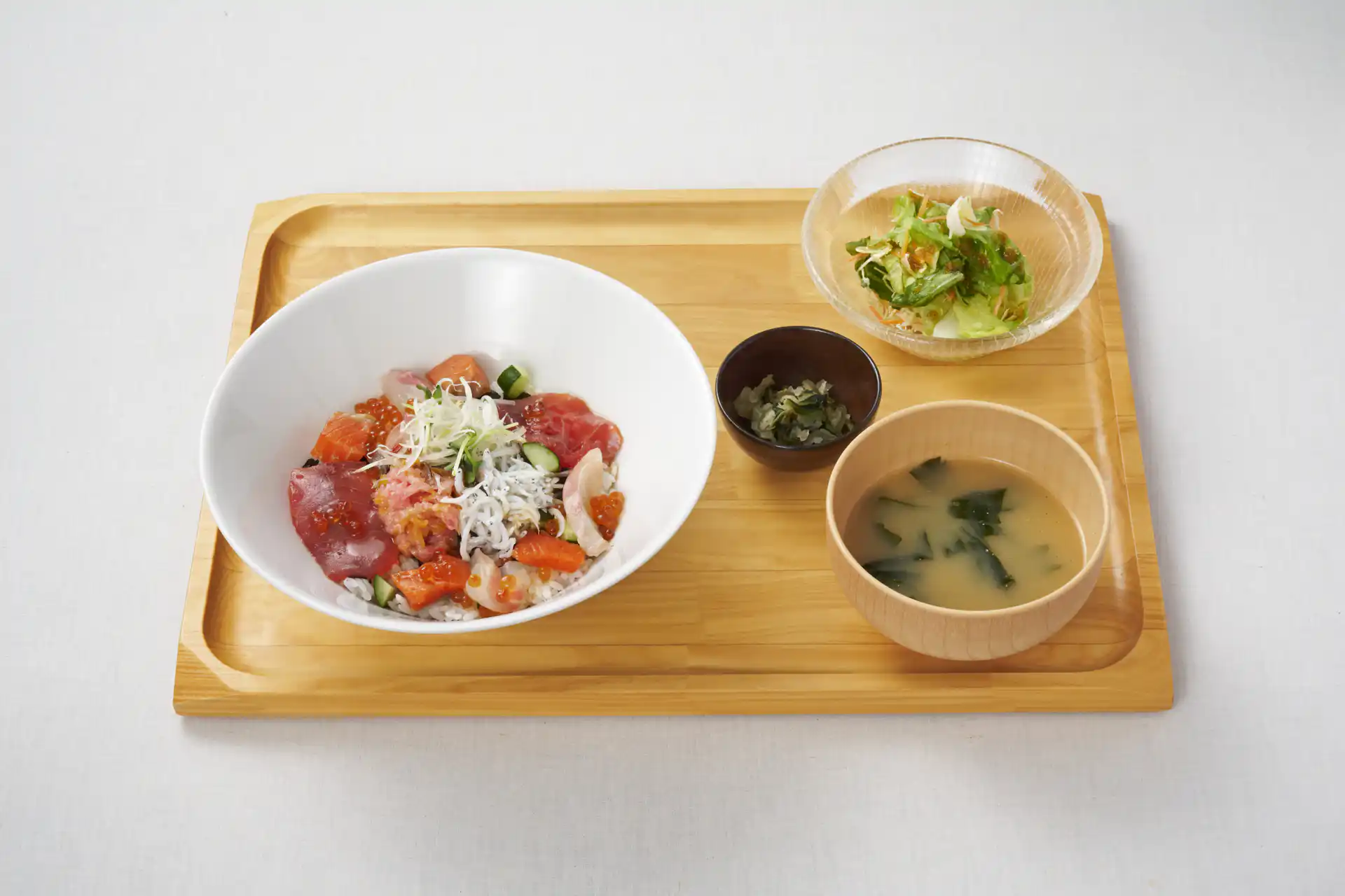 マグロ、鯛、サーモン、しらす、とろたく、いくらがのった当店大人気商品です!海の幸がお好きな方はぜひ!