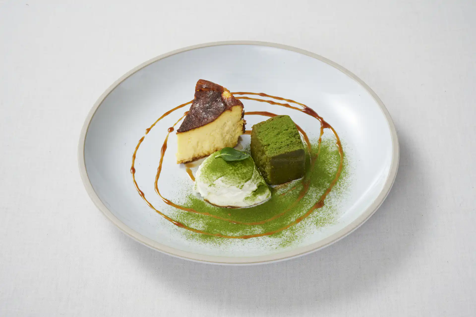 おぼんdeごはんオリジナルケーキ【バスクチーズケーキ】【抹茶テリーヌ】の2種盛り!