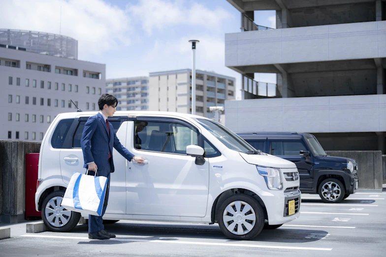 お届け品・提案商品を営業車に積み込み2件程営業にいきます。