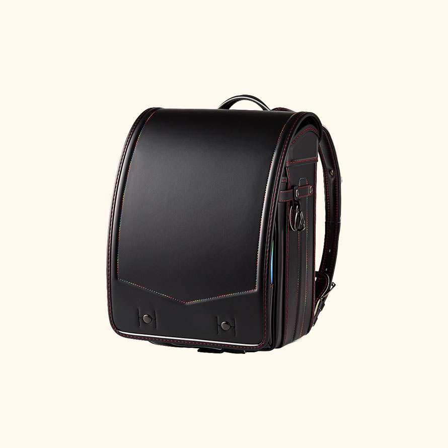 ファスナーやステッチがレインボーのランドセル。