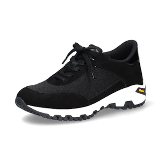ラメ混のニット生地やエナメル、ハトメ金具などの光沢素材をもちいた、シンプルながら華やかな印象のアッパーに、ボリューム感のあるヴィブラムソールがスポーティさを演出する、時流感と履き心地を両立させた新感覚スニーカー。