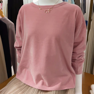 ベロアのような暖かみのあるカラー展開のボートネックニット。コンパクトな着丈がバランス取りやすく着こなせます。
