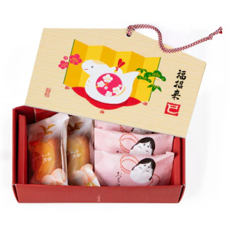 縁起菓子、吉祥菓子を新年のごあいさつに添えて―。ふたが絵馬になった菓子詰合せです。