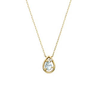 雫の内側にアクアマリンとダイヤモンドの瑞々しい輝きを閉じ込めたネックレス。
