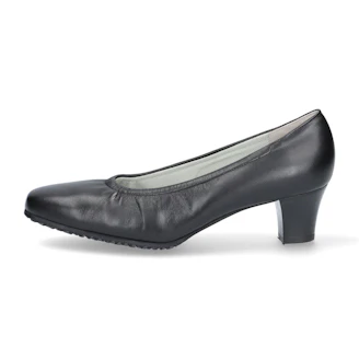 新訂版パンプスにフォーマルタイプが登場。ソフトなシープ(羊革)を使用。特殊な土踏まずパットが足の前すべりを防ぎ、履き口に入れたエラスティックが足を包み込むことで抜群の履き心地です。オリジナルの軽く滑りにくい底材も嬉しいポイント。晴雨兼用機能も付いて、お仕事から冠婚葬祭まで対応する1足です。