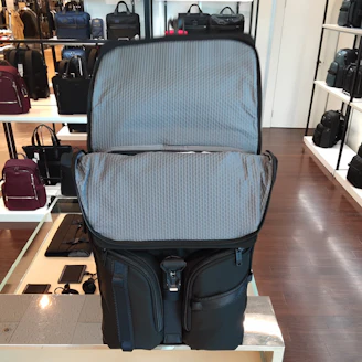 フロントの開口部には片手で操作可能で安全性に優れたFidlock®️社製のマグネット内蔵スピードクリップを採用しています。 フロントポケットに別売のTUMI +のポーチがカスタマイズできます。