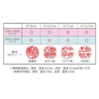 静岡県西部にお住いの女性の一般的な実印サイズ【直径13.5ミリ、フルネームの場合】印鑑ケース付