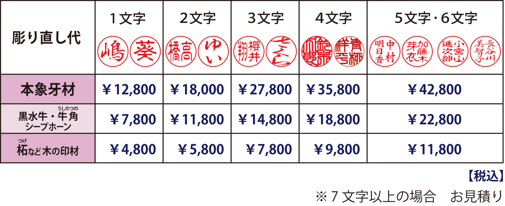 ■7文字以上の場合はお見積りです。