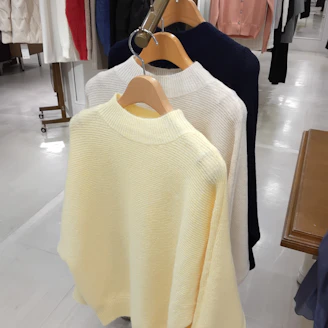 リブ編みを横に使用し、シャドーボーダー調に見えるようにデザインしたドルマンニット。モックネックで首元は暖かく、コートのインナーにも映えるきれいなパステルカラーと使い勝手の良いベーシックカラーをご用意しました。
