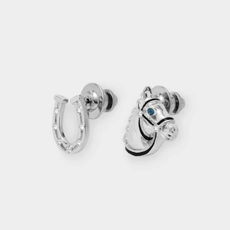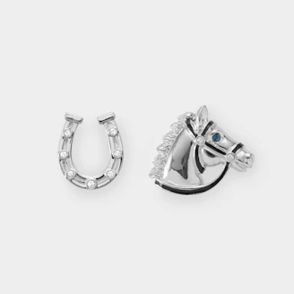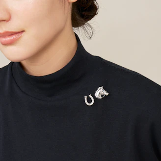 ホースシュー(馬蹄)と馬、2つのラッキーモチーフのタックピンブローチセット。