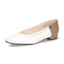 履き口の飾りステッチとカシメ金具がポイントのカッターパンプス。シンプルなデザインでオンオフ問わず活躍する、汎用性の高さがポイントです。履き口部分はトップラインにステッチが無い袋仕立てで、足当たりのソフトさを実感いただけます。つま先の中底部分に高反発材と低反発材を組み合わせたスポンジを使用して歩行時の衝撃を吸収します。防水加工を施した、異素材コンビの晴雨兼用パンプスは雨の日でも気にせず活躍します。