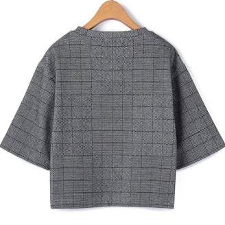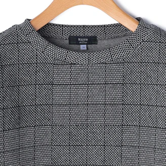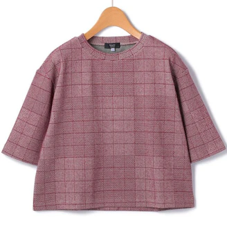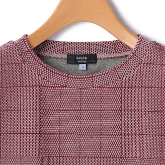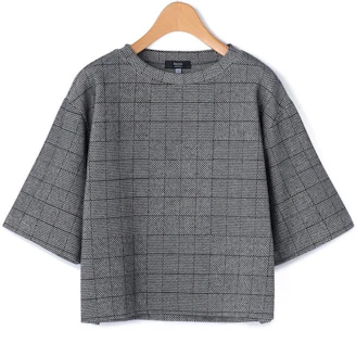 チェック柄のジャガードジャージー生地を使用したクルーネックカットソー。