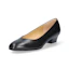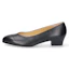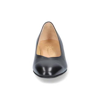 通勤や冠婚葬祭など、いろいろなばめんでいろいろな場面で活躍する万能アイテムの黒のプレーンパンプス。足にやさしい外反母趾対応で、ヒール高はデイリー使いにぴったりの3cm。履き口をVカットにすることでローヒールでも足がほっそり長く見えるようにデザインしました。トゥ形は優しい印象の丸みを帯びたスクエア形状です。甲革には防水キップ(牛革)を使用しているので、晴雨兼用としてお履きいただけます。トップリフトは歩行時の音を軽減するソフトタイプを搭載しています。