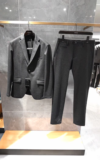 ミニマルなナローラペルに、ややスクエアラウンドしたフロントカットのベーシックシングルジャケット