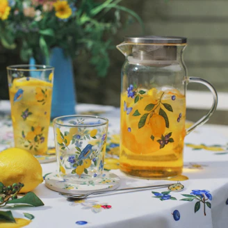 鮮やかなレモンが、夏のテーブルを彩ります。ガラスの冷水筒やタンブラーは、テーブルに置いても絵になる、この時期の主役アイテムです。食事を引き立てるプレートは、お部屋のインテリアとして飾るのもおすすめです。