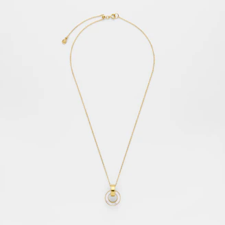 洗練されたサークルフォルムが、白蝶貝をより美しく魅せるネックレス。