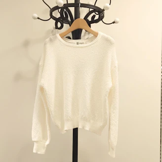 バランスの取りやすい短めの丈感と、袖口のボリュームがやわらかな印象のニットプルオーバー。身頃はコンパクトですっきりと着こなしやすい。