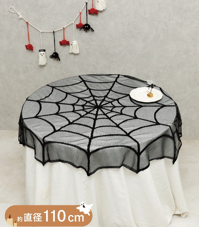 ●蜘蛛の巣デザインで、テーブルに敷くだけで雰囲気が一気に高まります。