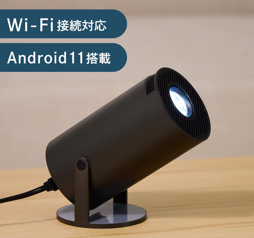 前後180°に可動するヘッドで、壁や天井、カーテンなどにも投影できます。