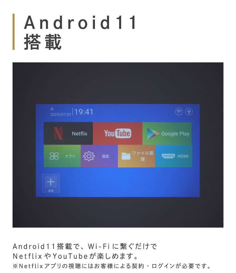 ●Android11搭載で、Wi-Fiに繋げばすぐに、NetflixやYouTubeが楽しめます。(※NetflixアプリのMiracast非対応のため、ワイヤレス送受ができなくなります。※APPのサービス内容によってはアカウント登録や有料契約が必要になります。)
