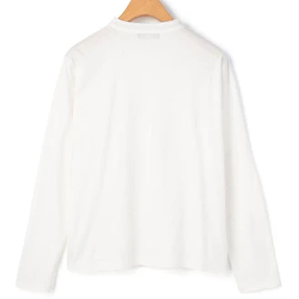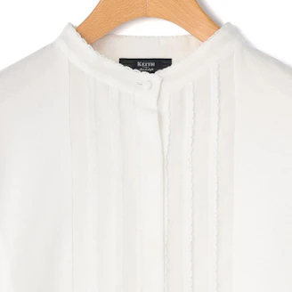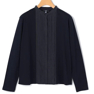スカラップカットを施した異素材使いがポイントのブラウス。
