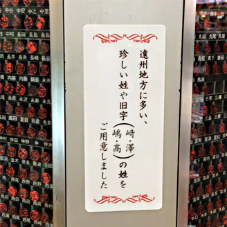 浜松市に多い苗字ベスト2000と、全国の苗字のベスト5000(日本の苗字の80%)のハンコを取り揃えております。