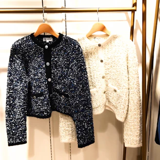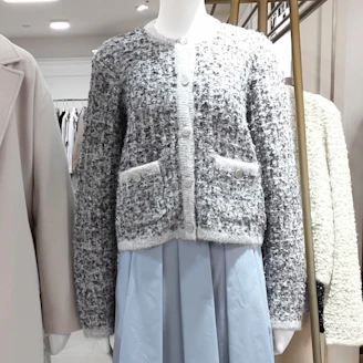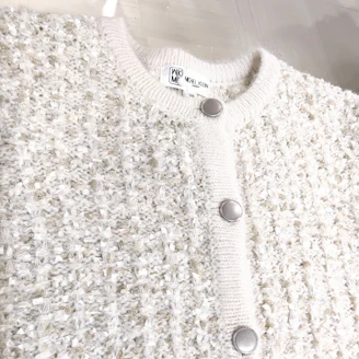 やわらかで着心地の良い華やかツイードニットの羽織り