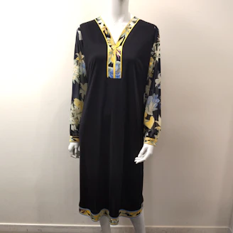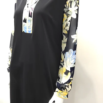 シックな無地をベースに、袖の透け感が女性らしく、上品で華やかなワンピースです。フォーマルなシーンにはもちろん、特別なシーンにもふさわしい一着です。