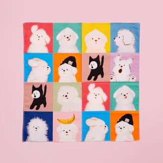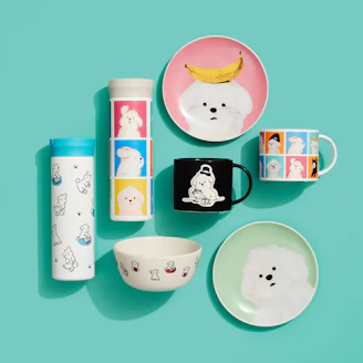 本コレクションは、白くふわふわとした毛並みと、やさしく垂れた耳が印象的な愛犬・ムンゲの愛らしい表情をやさしく表現し、想いを込めて仕上げたデザインです。繊細なタッチから温もりあふれるイラストまで、多彩なアプローチで表現されたアートが魅力です。