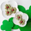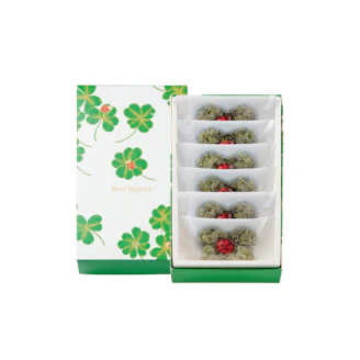 サクサクの四つ葉の抹茶パイにチョコレートのてんとう虫を乗せました。