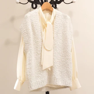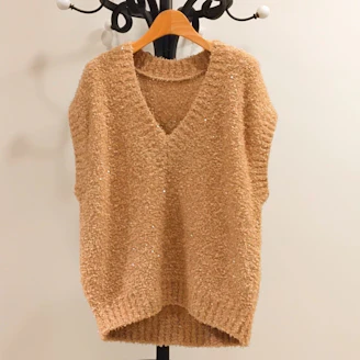 スパンコールがきらめく、ファンシーツイードのような表情が魅力のニットベスト。合わせるインナーやボトム次第で、さまざまな表情を演出でき、コーデのアクセントになる一枚です。