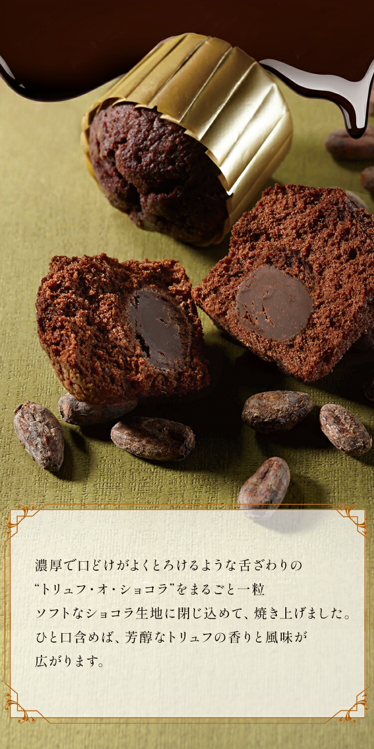 濃厚なショコラ生地にトリュフケーキ・オ・ショコラを一粒閉じ込めました。