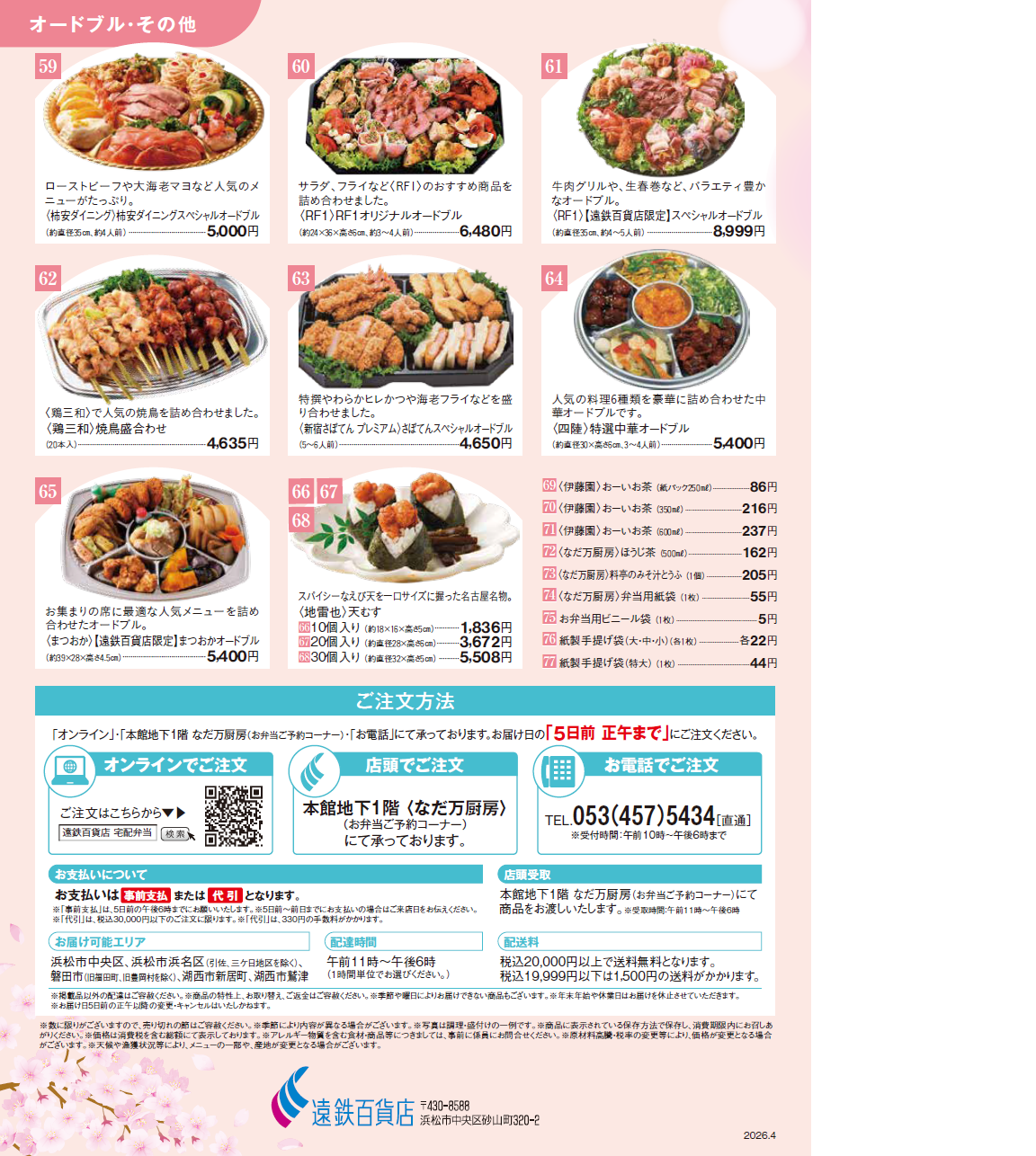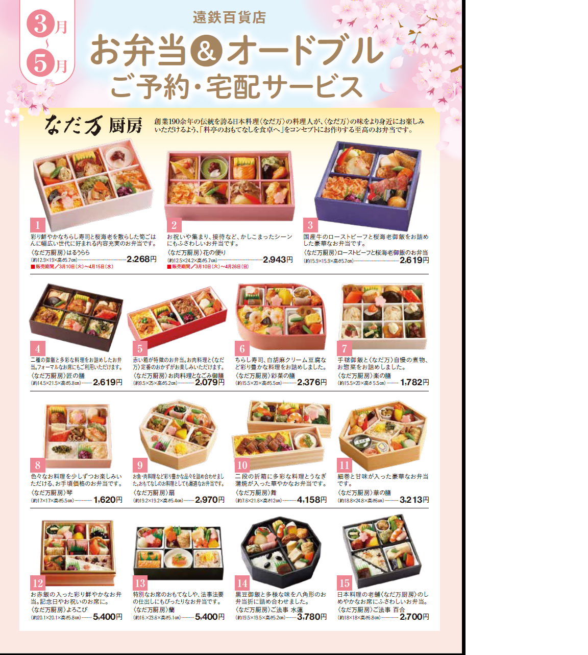 電話、または本館地下一階なだ万厨房(お弁当ご予約コーナー)にてご注文をお承りいたします。