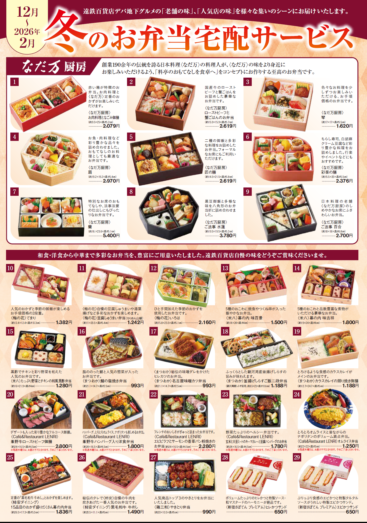 デパ地下グルメの「老舗の味」・「人気店の味」を様々な集いのシーンにお届けいたします!